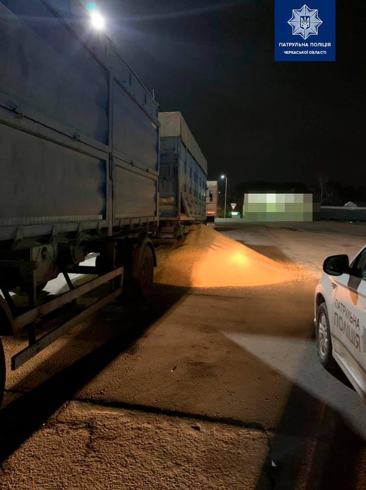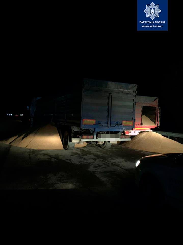 – Ввечері на стаціонарному посту, що на автодорозі М-05 в Умані, працівники Укртрансбезпеки подали вимогу для зупинки водіям двох вантажних автомобілів, аби провести зважування. Однак водії цю вимому проігнорували. Екіпаж інспекторів взводу патрульної поліції, який базується на 210 км автодороги Київ-Одеса, взявся наздоганяти порушників і зупинив обидва транспортні засоби, – повідомляє Патрульна поліція Черкаської області. – Під час розмови водії відмовилися пред’являти будь-які документи та на законну вимогу повернутися назад для зважування не реагували. У цей час до вантажних автомобілів під’їхало декілька авто з яких вибігли невідомі особи – близько 25 чоловіків, та повідкривали борти на причепах. У результаті чого зерно висипалося на дорогу. Після цього невстановлені особи швидко зникли з місця події.