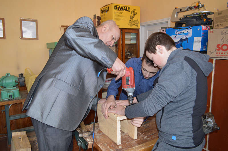 «Новобуд» для птахів вихованці учнівського лісництва виготовляють власними руками на уроках трудового навчання. Творчим «будівельним» процесом керує сам директор школи – Могер Юрій Григорович, за фахом – учитель трудового навчання.