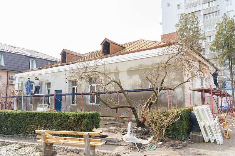 Будівельна бригада вже частково перекрила та підсилила дах, зробила гідроізоляцію та бетонну стяжку підлоги у самому приміщенні. Замінені системи водопостачання та опалення, встановлені нові енергозберігаючі вікна та вхідні двері. Стару веранду демонтували та підготували фундамент під нову споруду. Окрім того, виконуються внутрішні та електромонтажні роботи.