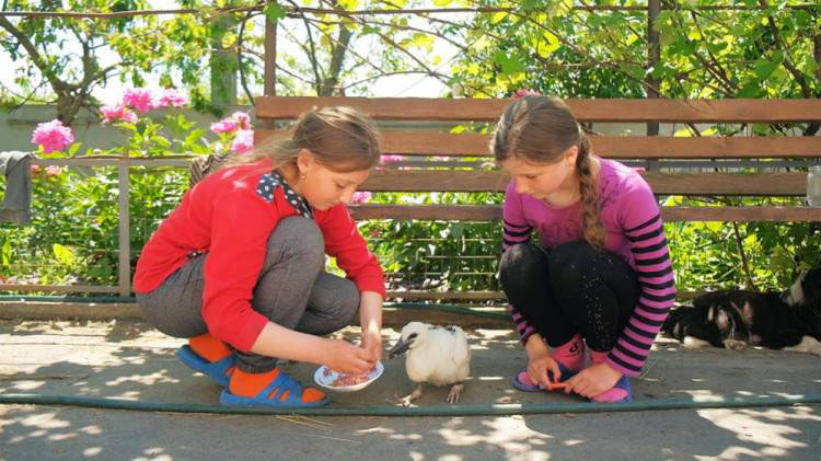 Щоправда, на демографію села лелеки поки що не дуже впливають, бо дітей тут менше, ніж малих лелеченят. Одне вже довелося рятувати від загибелі. Софія й Поліна Загнітки знайшли пташеня у траві. Не розбилося воно тільки тому, що впало з гнізда на кущ. Малюка назвали Буся, забрали додому і тепер годують його фаршем, черв’яками та слимаками. Буся росте швидко, За 3 дні у нього почало з’являтися пір’я. Софійка розповідає, що пташеня дуже лагідне, коли його гладять — тулиться і щось гелгоче.
