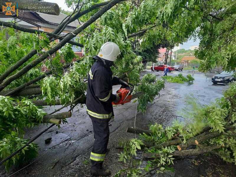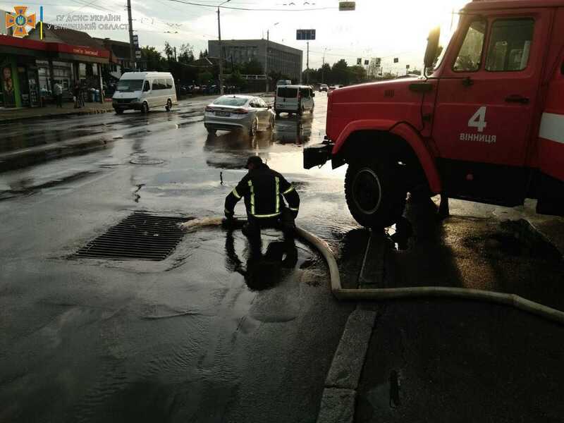 Бійці ДСНС допомагали громадянам відкачувати воду в обласному центр, де було відкачано близько 114 куб. м води. «Вчора відкачували воду на території Центрального ринку у Вінниці. Точніше, по вулиці Шмідта, 1. Дощова вода підтопила торгові точки. А по вулиці Мічуріна дерева впали на мережу електропередачі», – повідомив Олександр Кутовий, керівник прес-центру ГУ ДСНС України у Вінницькій області. До проведення даних робіт від ДСНС залучалося 82 чоловіки особового складу та 16 одиниць спецтехніки.