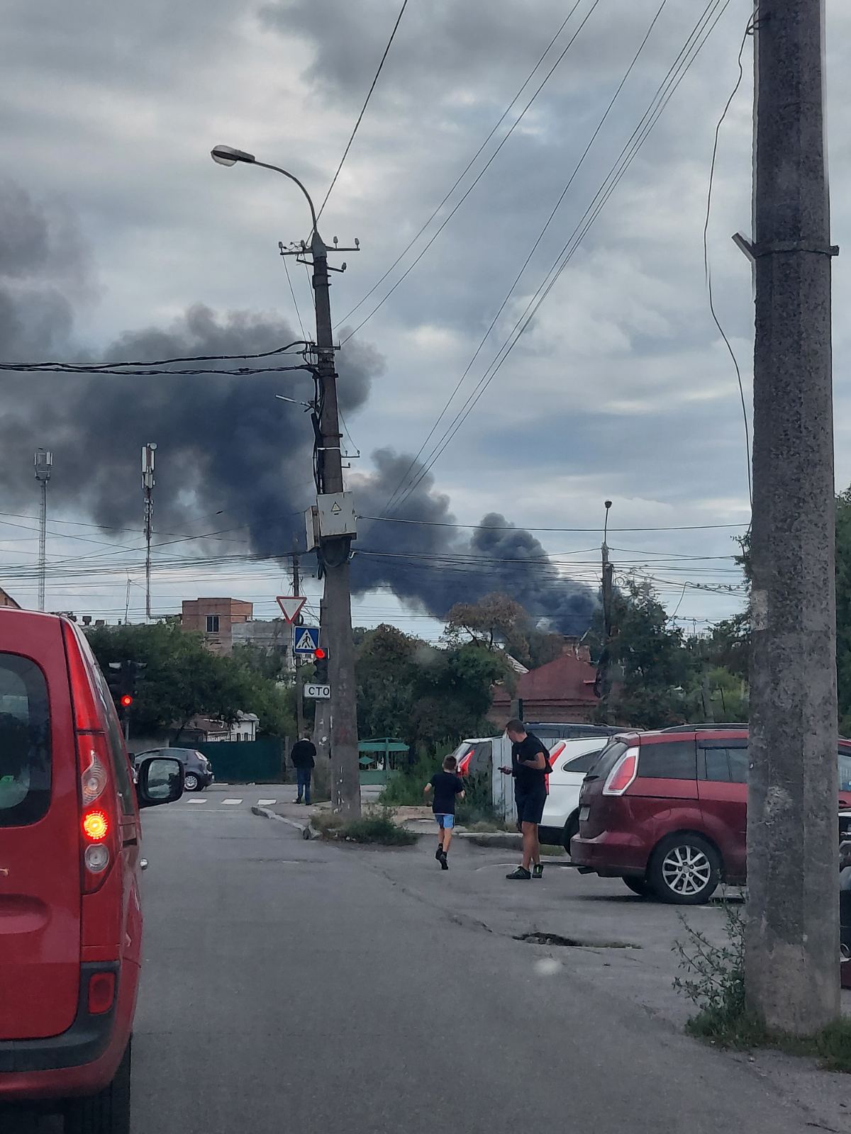 Стовп чорного диму побачило пів міста. У повітрі повис сморід. Пожежа спалахнула після 16 години і швидко поширювалася. Горіли склади на вулиці Костя Широцького. Очевидці розповідають, що у вогні вже й офісне приміщення. Пожежа може перекинутись на паркінг з вантажівками.