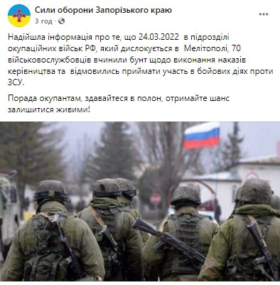 Але місяць, проведений в Україні, починає відкривати очі на справжню безглуздість цієї війни у тих російських окупантів, які ще вміють думати і намагаються зберегти своє життя.