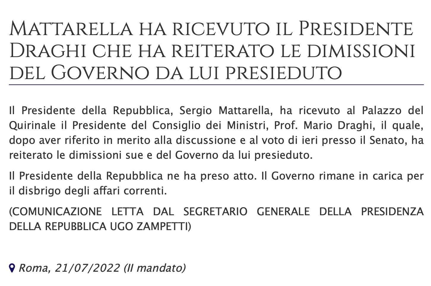 Відставку Маріо Драгі нещодавно прийняв президент Італії.