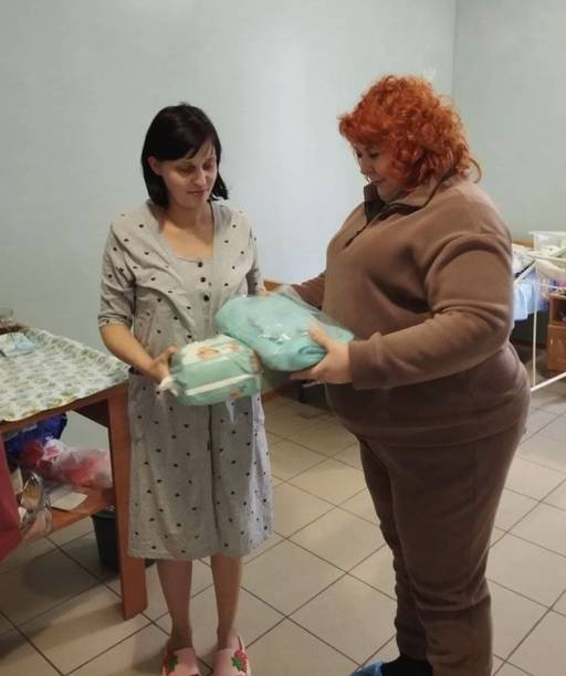 Мені усі ці чудові речі привезли щоб я передала в наше пологове відділення. Що ми і зробили із завідуючою відділення Оксана Шемета, яка положила ще до цих гарних речей памперси.