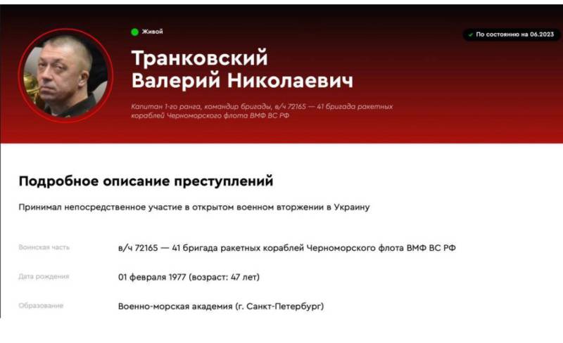 Унаслідок вибуху в Севастополі загинув начальник штабу 41-ї бригади ракетних кораблів і катерів ЧФ, капітан 1-го рангу Валерій Транковський.
