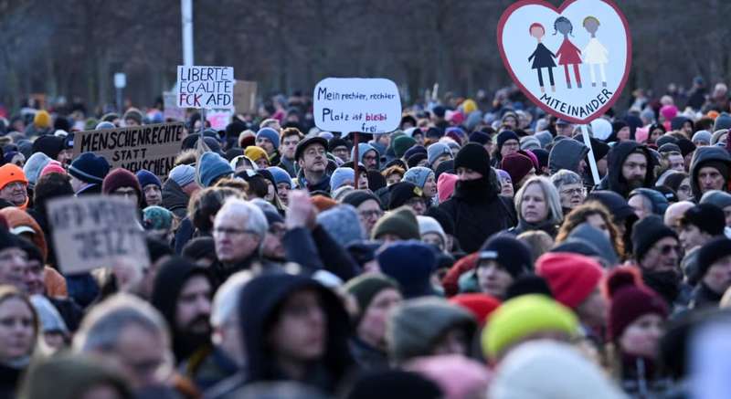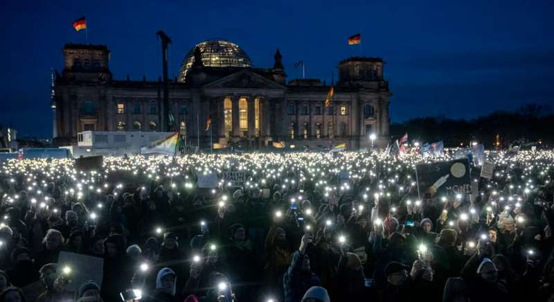 Протестувальники зібрались перед будинком Конрада Аденауера в четвер увечері на знак протесту проти спільного голосування ХДС/ХСС і “Альтернативи для Німеччини” за більш жорстку міграційну політику.