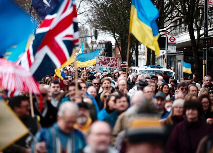 У Лондоні, напередодні третьої річниці повномасштабного вторгнення РФ та після скандальних заяв лідера США Дональда Трампа, відбулася мирна акція. Активісти зібралися біля посольства РФ та пройшли маршем центральними вулицями міста. Учасники акції, серед яких багато українських біженців, тримали плакати з закликами до посилення санкцій проти Росії та підтримки України. До мітингувальників також приєдналися представники грузинської та британської громад, які висловлювали солідарність із боротьбою України за свободу.