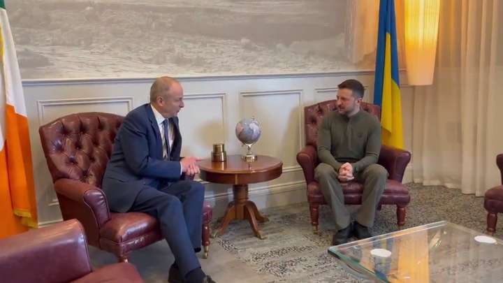 Президент Володимир Зеленський у четвер, 27 лютого, зупинився в Ірландії, де зустрівся з премʼєр-міністром країни Міхолом Мартіном, який раніше скасував запланований візит до Белфаста, щоб зустрітись з українським президентом.