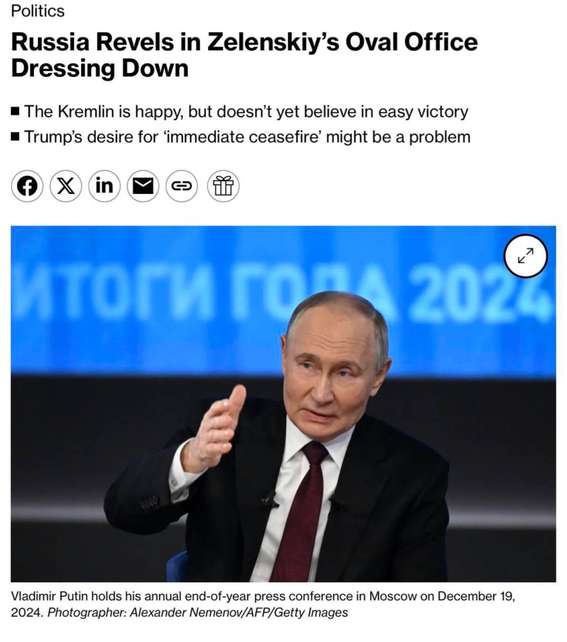 Провал переговорів між Трампом та Зеленським порадував, але насторожив москву.- Bloomberg