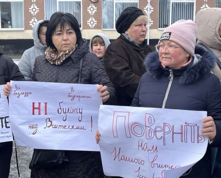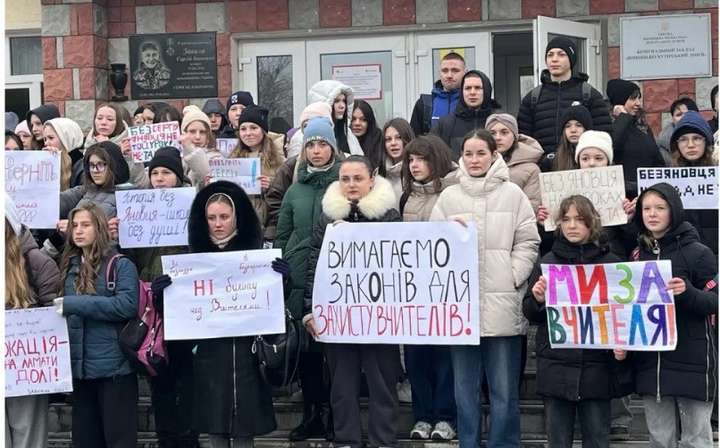 Однак учні Вінницько-Хутірського ліцею провели мітинг на підтримку вчителя.
