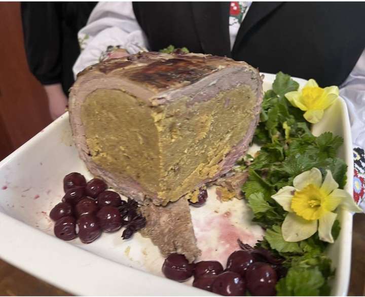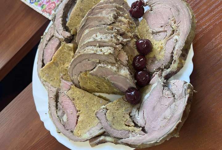 Начинку зашивають у м’ясо. Після цього дно казана встеляють вишневими гілочками та ставлять кілька вишень (традиційно використовують вимочені в алкоголі ягоди), додають 150 г води і ставлять на дві години у піч до запікання.
