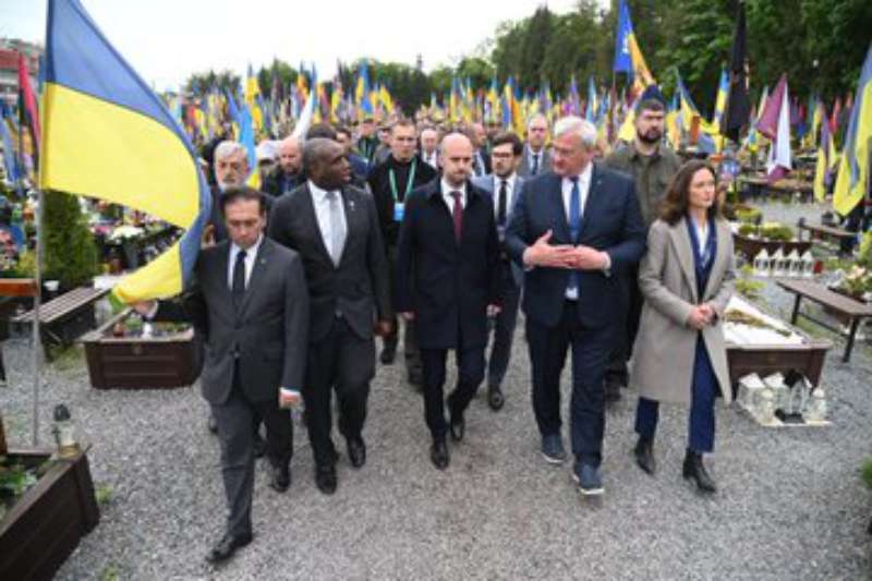 «Ми розпочали наш візит на Личаківському кладовищі, щоб віддати шану українським героям, які пожертвували своїм життям, захищаючи Україну від російської агресії. Під час зустрічі прем’єр-міністра Дениса Шмигаля з Каєю Каллас ми обговорили подальші спільні зусилля щодо зміцнення України, посилення тиску на Росію та просування вступу України до ЄС», – написав міністр у соцмережі X.