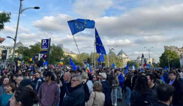 За даними організаторів, у Бухаресті зібралося близько 50 тисяч людей, багато з яких махали прапорами Румунії та ЄС і тримали плакати з написом “Не голосуєш – не рахуєшся”.