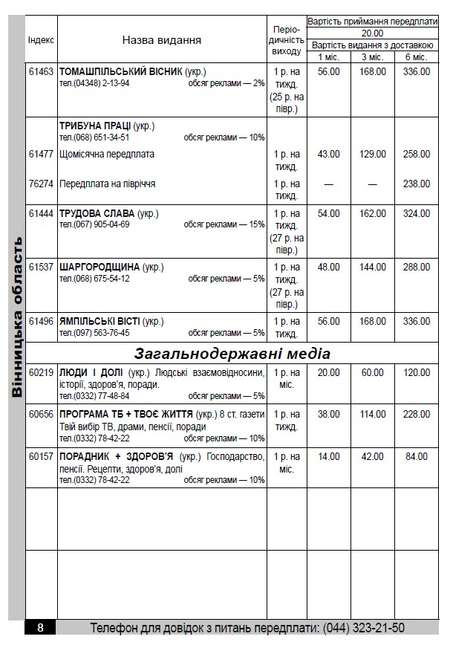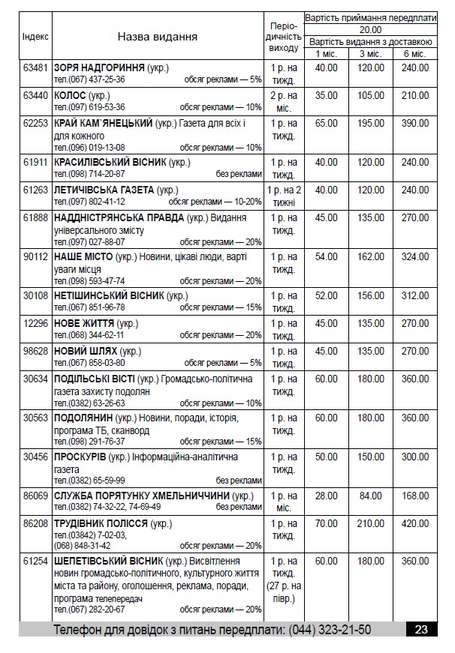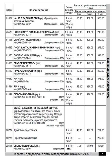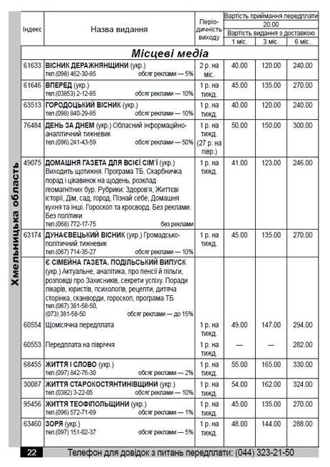 Терміни оформлення передплати – півріччя, квартал або помісячно.