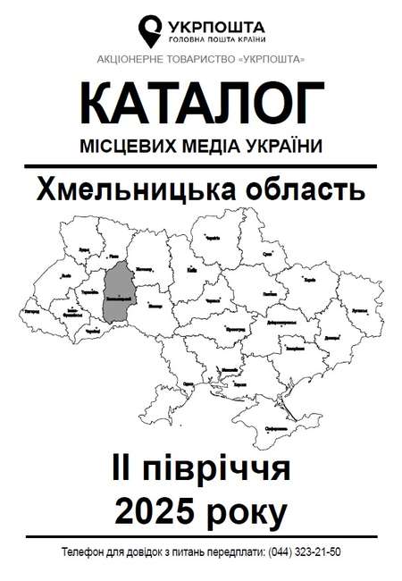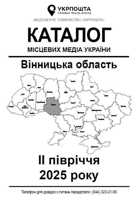Акціонерне товариство «Укрпошта» пропонує вашій увазі «Каталог місцевих медіа України Вінницької та Хмельницької областей на ІІ півріччя 2025 року», передплата за яким може бути оформлена на території окремої області на термін доставкою з липня та наступних місяців 2025 року.