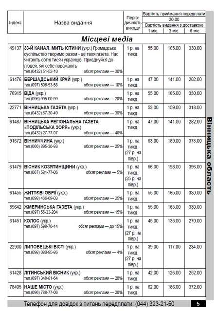 На медіа, що зазначені в розділі «Місцеві медіа» за межі відповідної області передплата не приймається.