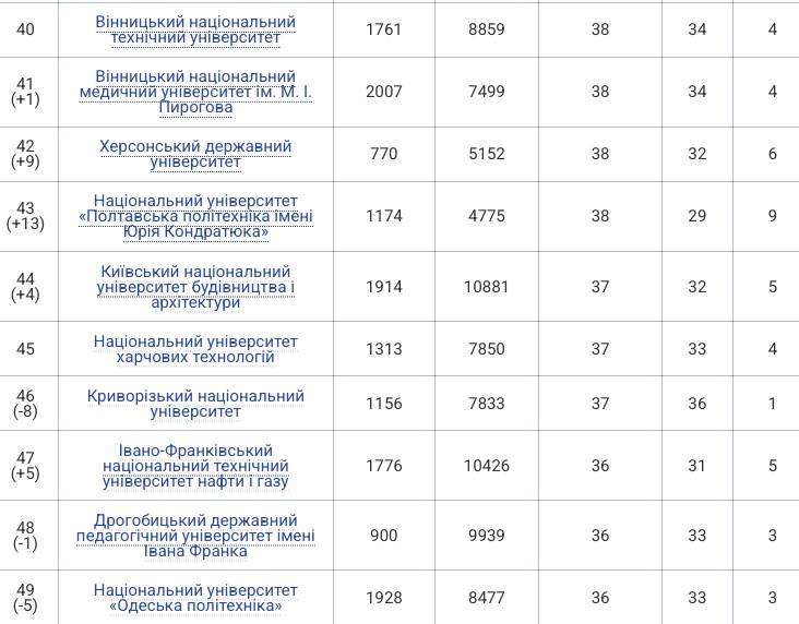 На 41 позиції розташувався ВНМУ, а ВНАУ займає 104 місце.