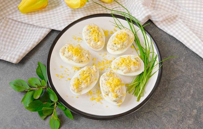 Тому перед приготуванням дістаньте їх із холодильника та дайте трохи нагрітися, щоб не було сильного перепаду температур і яйця не тріснули. Варіть яйця саме 8 хвилин після закипання, щоб жовток був уже твердим, але гарно жовтим і податливим. Якщо варитимете довше, матимете надто твердий і вже блідіший жовток.