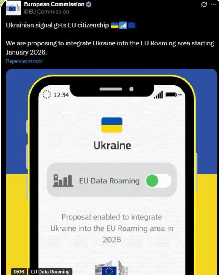 Єврокомісія пропонує інтегрувати Україну в роумінгову зону ЄС після підписання Зеленським відповідного Закону.