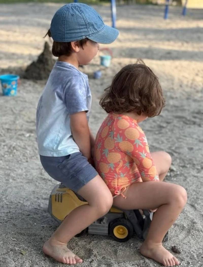 На кадрі діти зірки бавляться разом на ігровому майданчику, сидячи на іграшковому автомобілі. Щоправда, співак вирішив поки не розкривати облич своїх малюків.