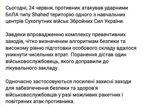 Поранено одного військовослужбовця, інші, судячи з повідомлення, встигли піти в укриття.