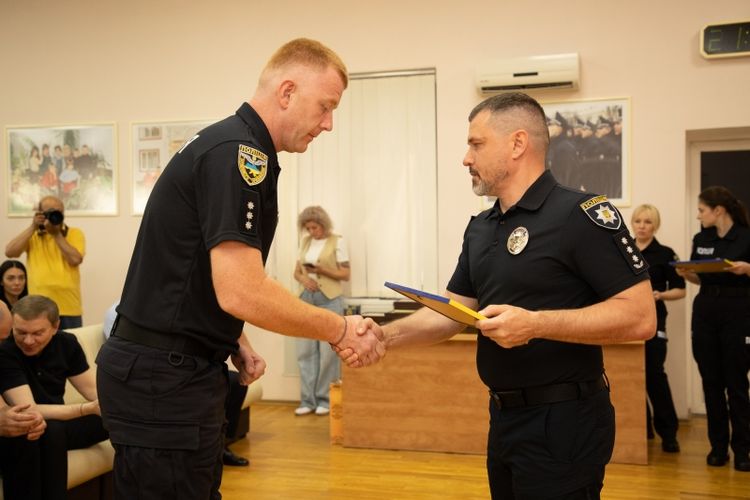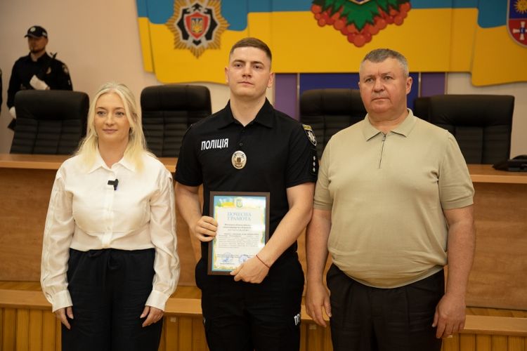 Кращим поліцейським з нагоди професійного свята голова обласної Ради Вячеслав Соколовий та заступниця начальника обласної військової адміністрації Наталя Заболотна вручили Почесні Грамоти обласної Ради та обласної державної адміністрації.