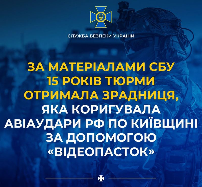За доказовою базою Служби безпеки 15 років ув’язнення отримала ще одна агентка фсб, яка коригувала повітряні атаки рф по Київщині.