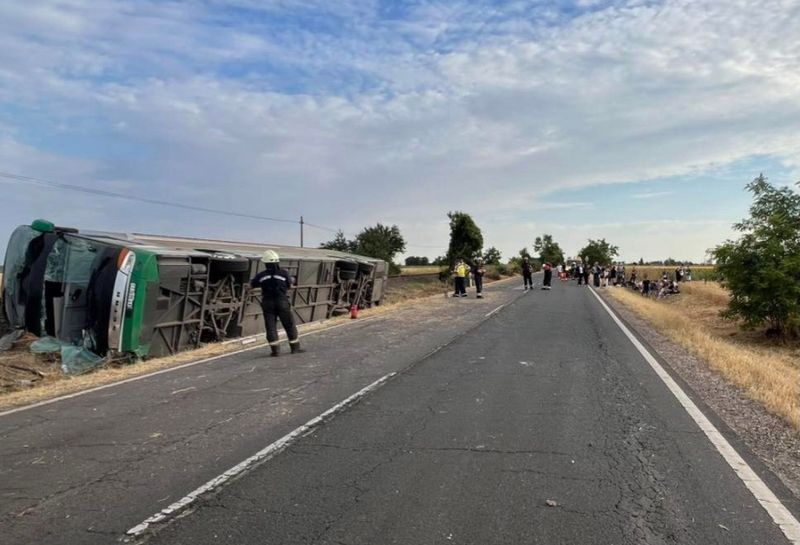 Поблизу угорських міст Кунсентмартон і Тисафельдвар сталася аварія за участі пасажирського автобуса з українською реєстрацією.