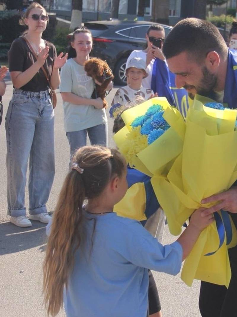 Першим привітати чоловіка вибіг син його бойового побратима Олександра Безживотного. Віталій разом з Олександром боронили Україну від ворога, разом виступализа футбольний клуб «Ягуар» – Віталій був капітаном команди, а Олександр – воротарем.