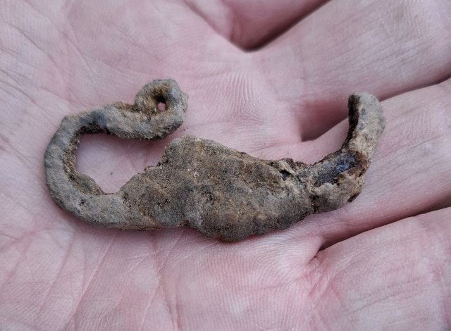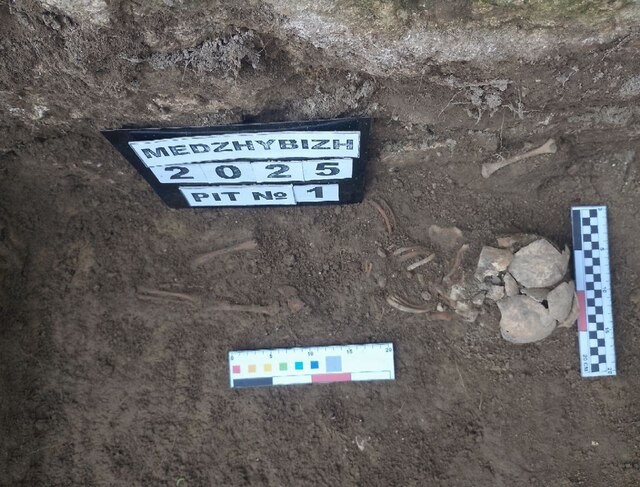 Про виявлений скелет дитини, срібну монету XVII століття та кераміку різних періодів розповів Віктор Вєтров, завідувач сектору археології Державного історико-культурного заповідника «Межибіж».