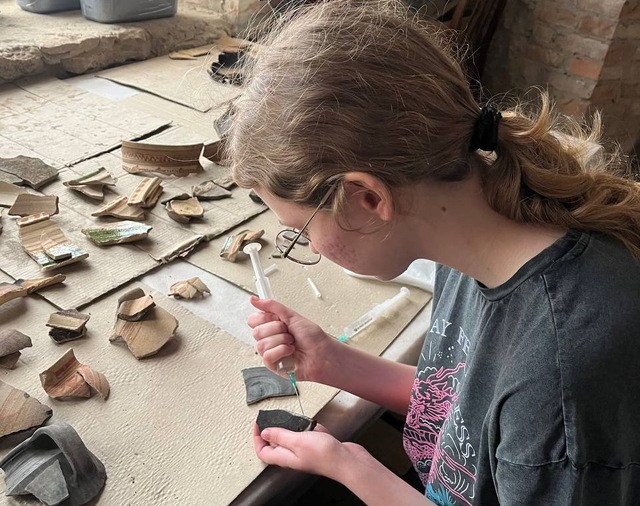 Після завершення першої практики до досліджень долучилися студенти з Хмельницького. Дівчата займалися реставрацією кераміки, знайденої у попередні роки, та переходили до етапу склейки фрагментів, а хлопці продовжили розкопки в тих самих шурфах.
