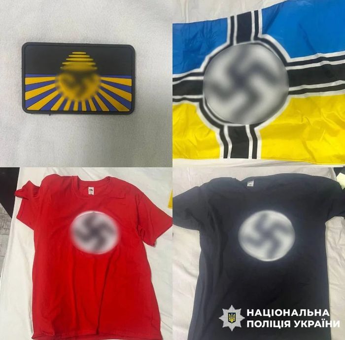Їх обох затримали й провели обшук у їхній орендованій квартирі, де знайшли одяг, прапор та нарукавний шеврон з елементами нацистської символіки.