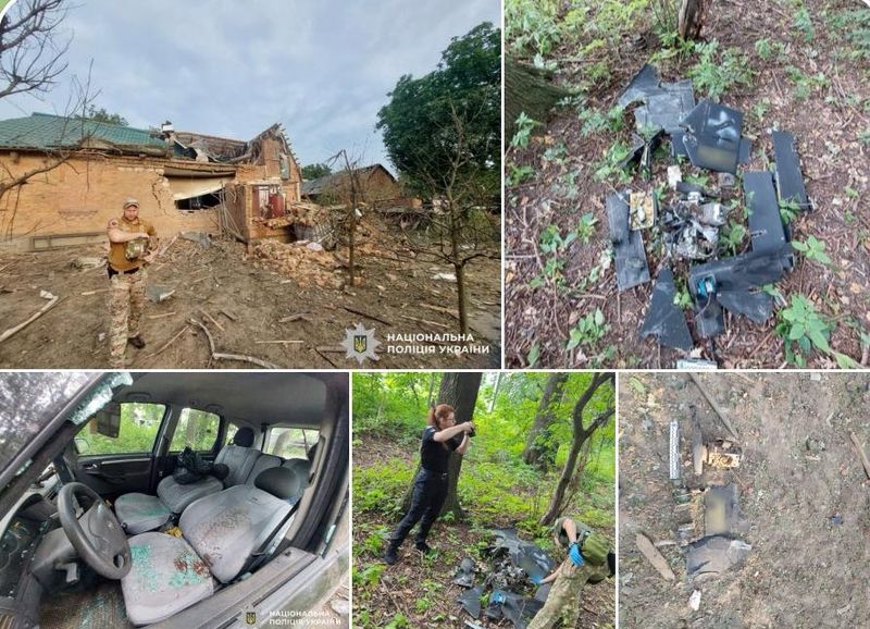 Вибухотехніки проводять огляд місць влучань та падінь БпЛА. Наразі відомо про пошкодження двох промислових підприємств, пожежу на яких ліквідовували рятувальники, 18 приватних домогосподарств та цивільного автомобіля.