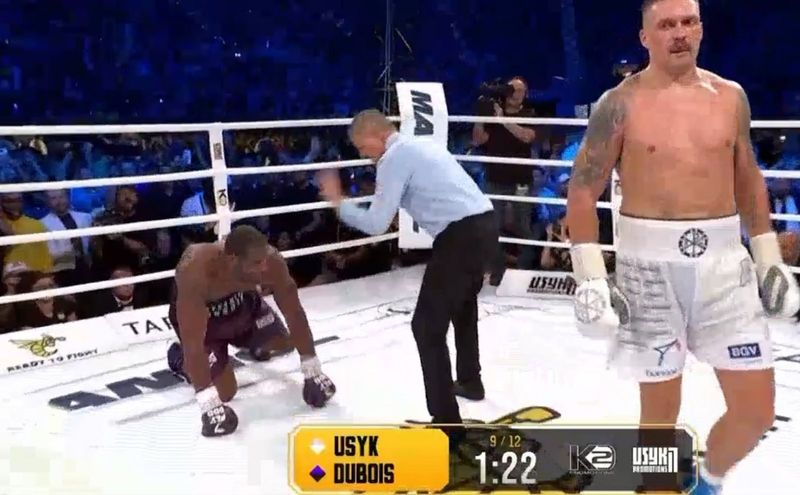 Усик нокаутував Дюбуа в п’ятому раунді. У тому ж раунді українець відправив британця в нокдаун. Той піднявся, але Олександр моментально добив суперника.