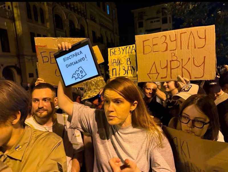 Вона вимагала відставки Сирського. Але учасники мітингу у Києві, знаючи, що вона підтримала закони, які викликали протести по всій Україні, почали скандувати ось такі гасла: «Безугла чорт» та «Безуглу в дурку».
