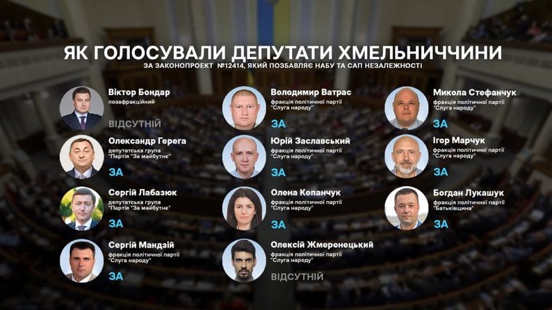 Сім депутатів із Вінниччини та дев’ять депутатів із Хмельниччини підтримали законопроєкт 12414.