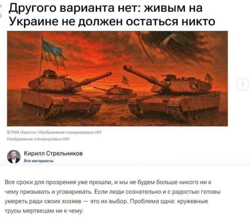 «Іншого варіанту немає: ніхто не повинен залишитися живим в Україні»: таку статтю вчора опублікували російські пропагандистські медіа.