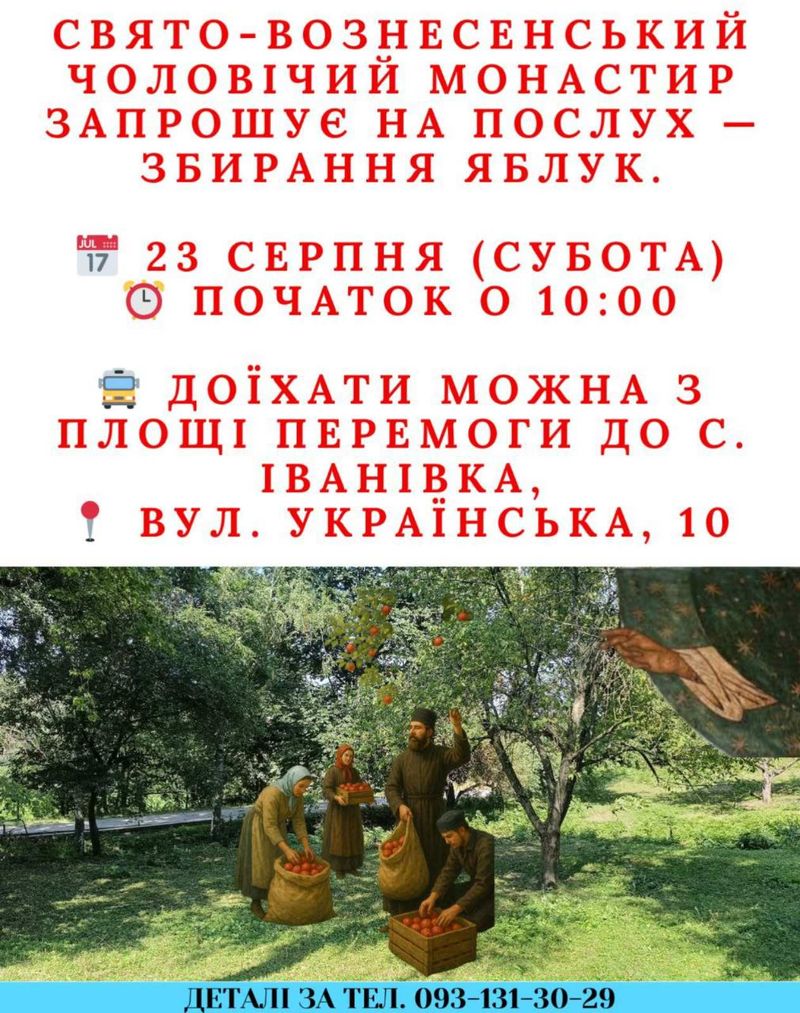 У цей день відбудеться послух — збирання яблук у монастирському саду.