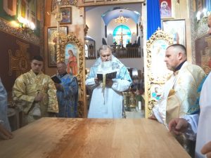 Під час чину освячення відбувся хресний хід зі святими мощами навколо храму. Опісля владика Михаїл очолив Божественну літургію, під час якої лунали молитовні прохання за воїнів-захисників України, за владу і народ, а також за упокій душ усіх полеглих оборонців та невинно вбитих.