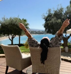 У своєму Instagram вона показала неймовірні кадри з балкону та території готелю, де видніються мальовничі бухти, синє море, а також моменти прогулянок по місцевості.