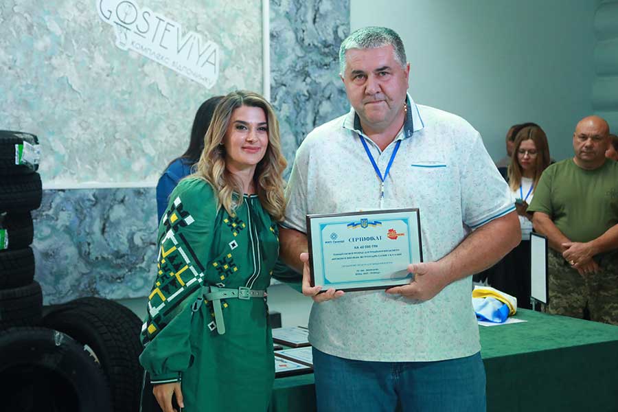 Народна депутатка України, партнерка та співзасновниця ГО «Ми — Вінничани» Лариса Білозір вручила сертифікати військовим і громадам не лише на отримання обладнання, але й на придбання автівок для фронту.