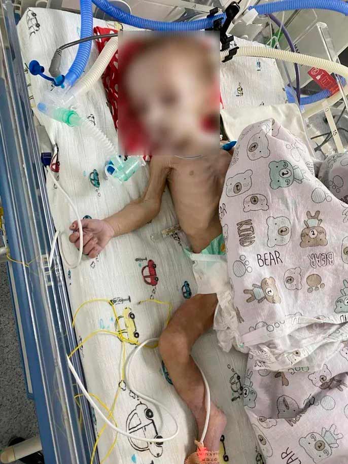 Коли лікарі вперше оглянули хлопчика, він у віці 7 місяців важив лише 3,3 кілограма, маючи 60 сантиметрів зросту. Дитину з украй важкою білково-енергетичною недостатністю шпиталізували у відділення інтенсивної терапії, де він пробув кілька місяців.
