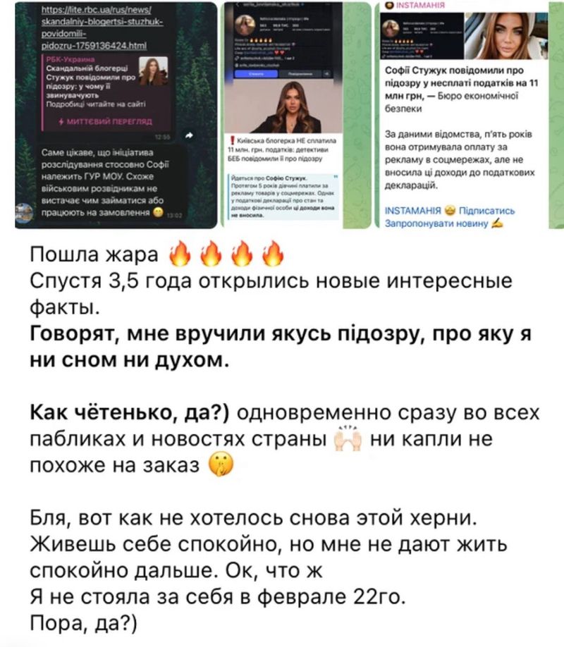 Як не хотілося знову цієї херні. Живеш собі спокійно, але мені не дають спокійно жити далі. Ок, що ж. Я не стояла за себе у лютому 2022-го. Час настав, так? Знайшли головну крадійку грошей в Україні… Проти мене почали політизовану травлю”, — зазначила Софія.