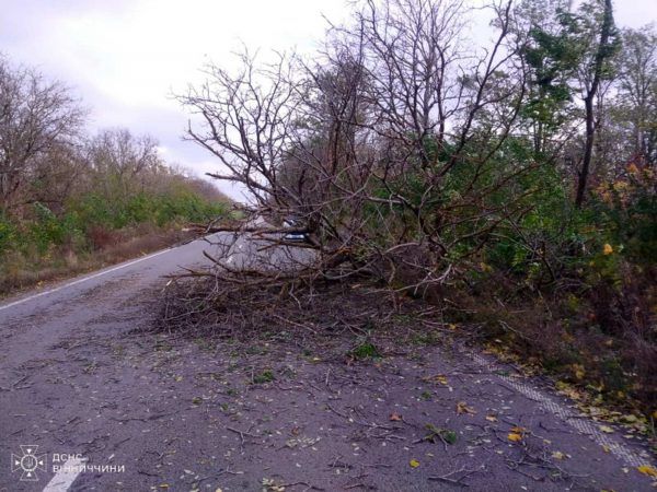 Як повідомляють в ГУ ДСНС у Вінницькій області, надзвичайники оперативно розчистили проїжджі частини доріг від повалених дерев і гілля.
