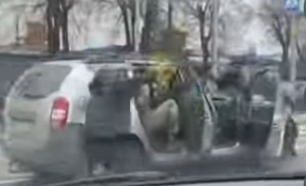 Під час нападу один із цивільних почав бігти за автомобілем, намагався проникнути всередину транспортного засобу, чіплявся та, втративши рівновагу, перечепився і впав на проїжджу частину. Зазначений момент зафіксовано на відео, що поширене в мережі.