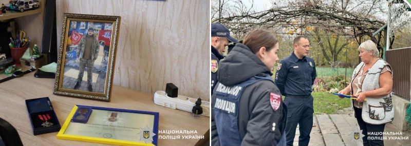 Помічник начальника ГУНП у Вінницькій області з ветеранської політики Микола Бичок та начальник управління кадрового забезпечення Олександр Конєв передали державні нагороди родинам поліцейських, які у березні цього року зникли безвісти під час бойових дій на сході.