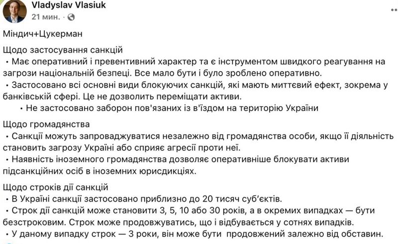 На думку уповноваженого президента з питань санкційної політики Владислава Власюка, до речі ексвінничанина, санкції проти бізнесменів – фігурантів корупційної справи в енергетиці, мають оперативний і превентивний характер та є інструментом швидкого реагування на загрози національній безпеці.