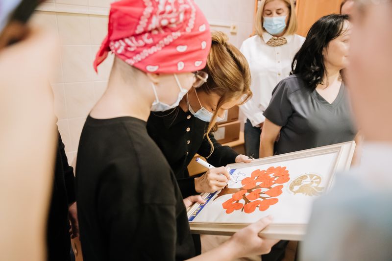 Співачка особисто приїхала до медичного закладу, щоб підтримати команду лікарів, зустрітися з батьками та маленькими пацієнтами й передати інфузійні насоси в онковідділення.