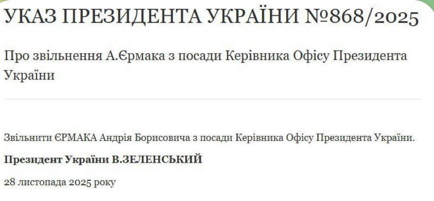 Вже відомо, що Зеленський офіційно звільнив Єрмака
